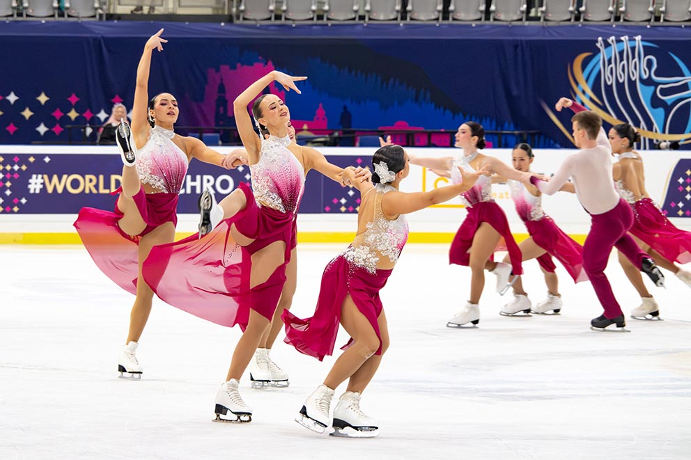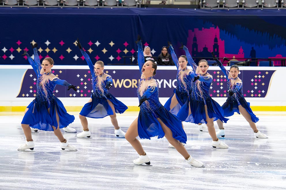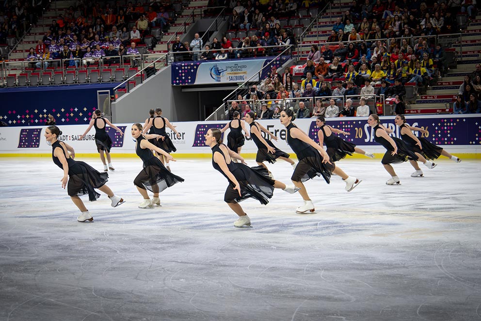 Auf Platz zwei liegt nach dem Kurzprogramm mit 79,30 Punkten das Team Haydenettes aus den USA. „Wir sind rausgegangen, haben die Musik verinnerlicht und unser Herz auf dem Eis gelassen“, freute sich Team-Captain Paige Felton über eine neue Saisonbestleistung. „Wir haben die Performance gemeinsam mit dem Publikum sehr genossen. Heute standen der Spaß und das Erlebnis im Vordergrund, denn die harte Arbeit war durch die intensive WM-Vorbereitung schon abgeschlossen.“ Man habe gesehen, welch leidenschaftliche Liebe zur Sportart das gesamte Team in den Auftritt gelegt hat, ergänzte Co-Captain Taylor Olender.