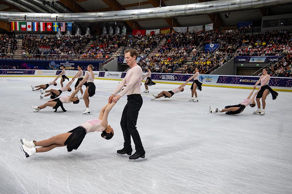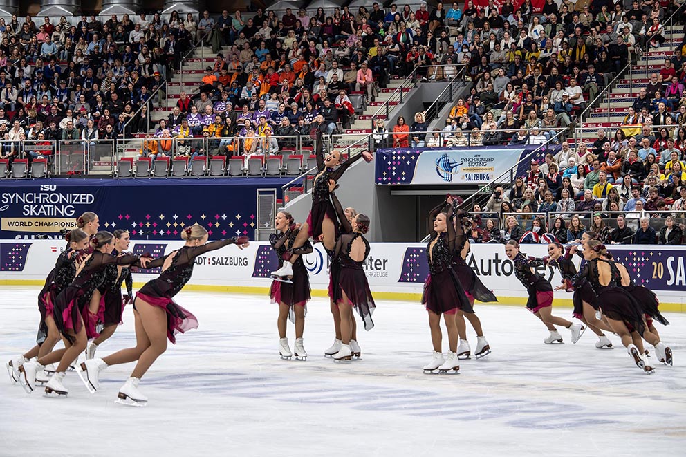 Nach der Bronzemedaille im vergangenen Jahr sicherte sich das Team Haydenettes aus Lexington nahe Boston in Salzburg die Silbermedaille. Mit 229,28 Punkten auf Basis zweier Saisonbestleistungen verteidigten sie einen minimalen Vorsprung auf das Team Helsinki Rockettes. „Es war ein wundervolles Event. Wir haben es im Miteinander sehr genossen und freuen uns sehr, dass wir unser bestes Skating auf das Eis gebracht haben“, freute sich Co-Captain Trevor Olender, die den letzten Wettkampf ihrer Karriere lief und sich nach ihrer dritten WM-Medaille ins „Nine-to-Five-Berufsleben“ verabschieden wird. Team-Captain Paige Felton ergänzte: „Wir waren jede Sekunde auf dem Eis voll fokussiert und haben unsere Story durch unser Programm auf hervorragende Weise erzählt.“